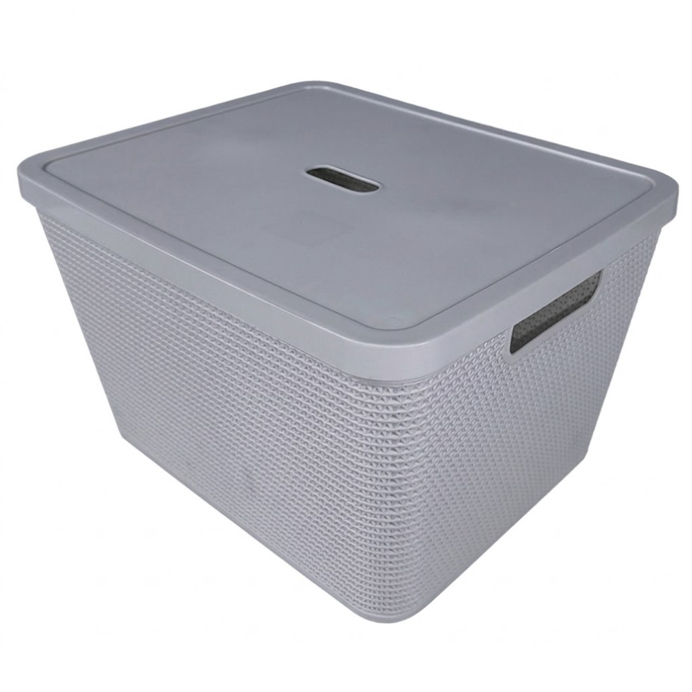 Alfa Hogar Cesta Ratán Multiusos Alta Con Tapa Grande Color Gris