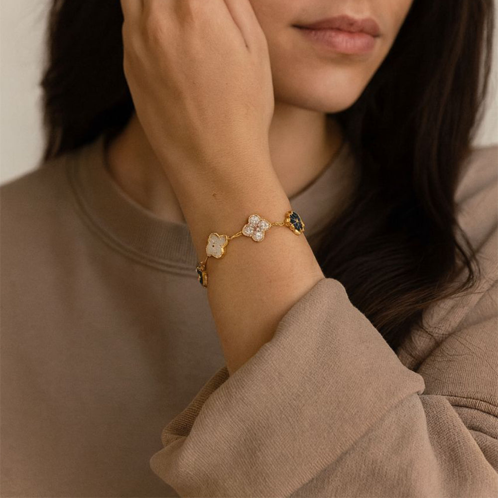 Element Of Love Pulsera De Trébol Green Flash Gold Plated Cubic Zirconia