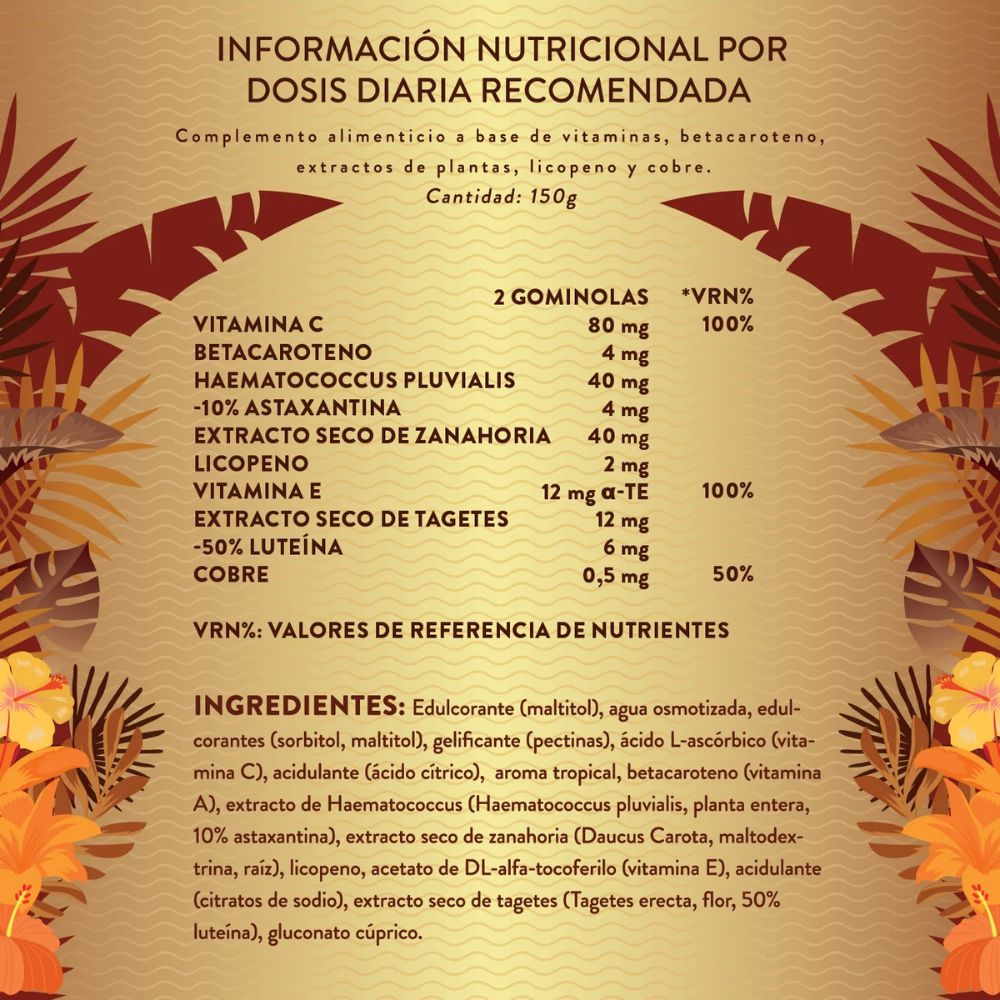 - Bronceado natural y uniforme: El betacaroteno y el extracto de zanahoria potencian el tono dorado desde dentro.