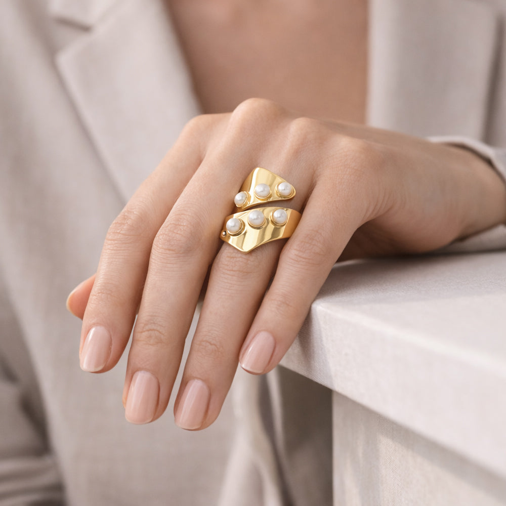 H&Co Anillo Ajustable Para Damas Perlas De Arrecife